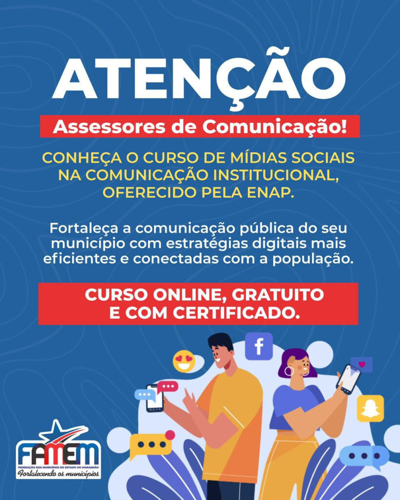 MARANHÃO, 25 de abril de 2026 — A Escola Nacional de Administração Pública (ENAP) está com inscrições abertas para um novo curso. A formação aborda o uso de mídias sociais na comunicação institucional.