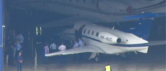 O avião superluxo do apresentador, comprado com dinheiro do BNDES em uma operação escandalosa de empréstimos para milionários com subsídios às custas de dinheiro dos pagadores de impostos, foi usado pelo ex-presidiário Luís Inácio Lula da Silva para deixar a cidade onde estava preso, Curitiba