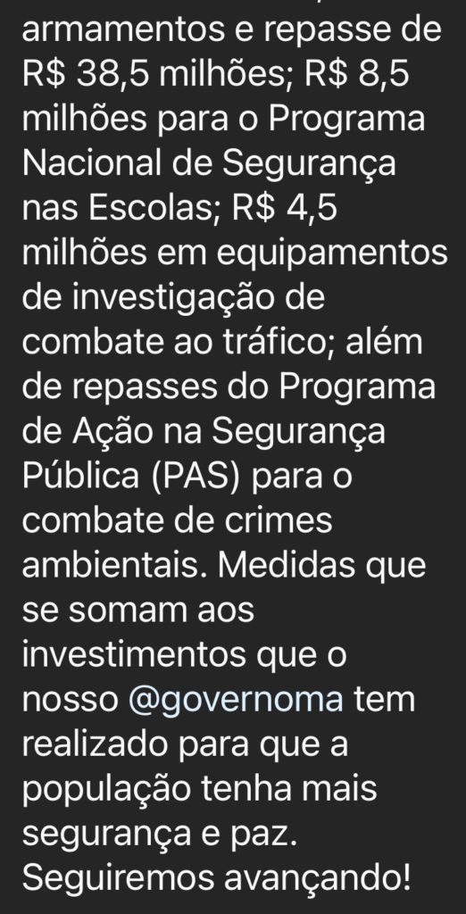 O governador respondeu à manifestação da Adepol no Instagram, reafirmando o compromisso de fortalecer as ações de prevenção e combate à violência. Afirmou que está atento e trabalhando para avançar na área de segurança pública.