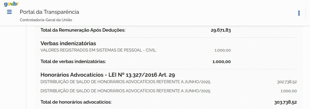 Os honorários de sucumbência são pagos quando a União vence processos judiciais e a parte derrotada arca com custas processuais. Em julho, cerca de 6 mil integrantes da AGU receberam quantias semelhantes, cada um em torno de R$ 310 mil. O montante total pago no mês foi de R$ 2,34 bilhões.