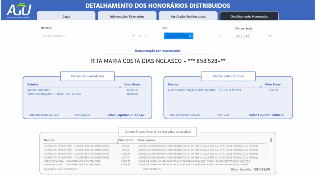 BRASÍLIA, 09 de setembro de 2025 – A procuradora da Fazenda Nacional Rita Dias Nolasco recebeu em julho mais de R$ 303 mil em honorários de sucumbência, segundo registros do Portal da Transparência. Ela é namorada do presidente do Supremo, Luís Roberto Barroso.